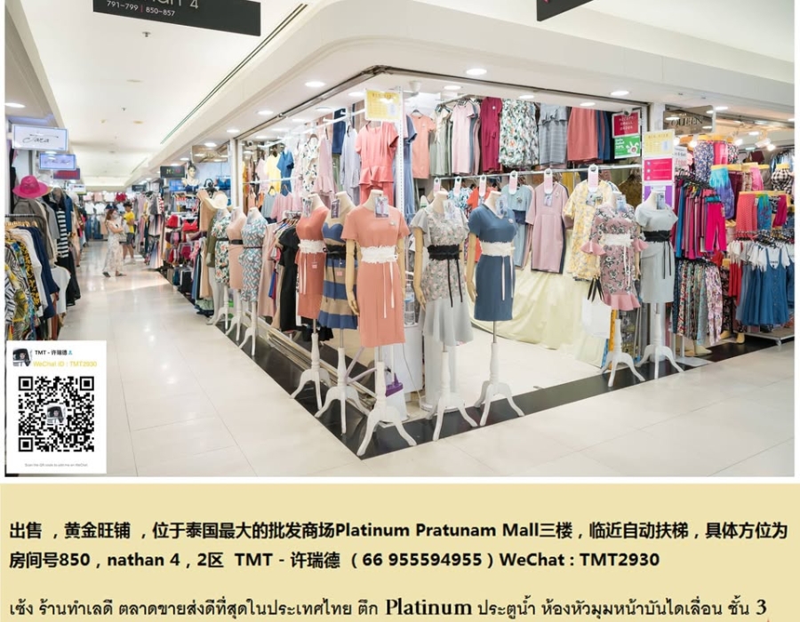 位于泰国最大批发商场——Platinum Pratunam Mall 三楼,靠近自动扶梯,位置优越,人流量大。