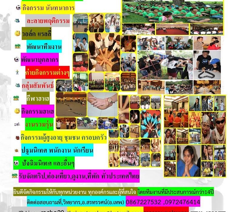 วิทยากรทีมงานไทยนันทนาการ (ทุยทำทีม) รับอบรมสัมมนา เพื่อพัฒนาคน พัฒนาทีมงาน พัฒนาองค์กร กลุ่มสัมพันธ์ วอล์คแรลลี่ กีฬาฮาเฮ ท่องเที่ยวประจำปี ค่ายกิจกรรม ค่ายผู้นำ ปฐมนิเทศ ปัจฉิมนิเทศ ให้กับ เด็กเยาวชน ชุมชน พนักงาน กิจกรรมสนุกสนาน เฮฮา ได้สาระ ประสบการณ์กว่า 20 ปี