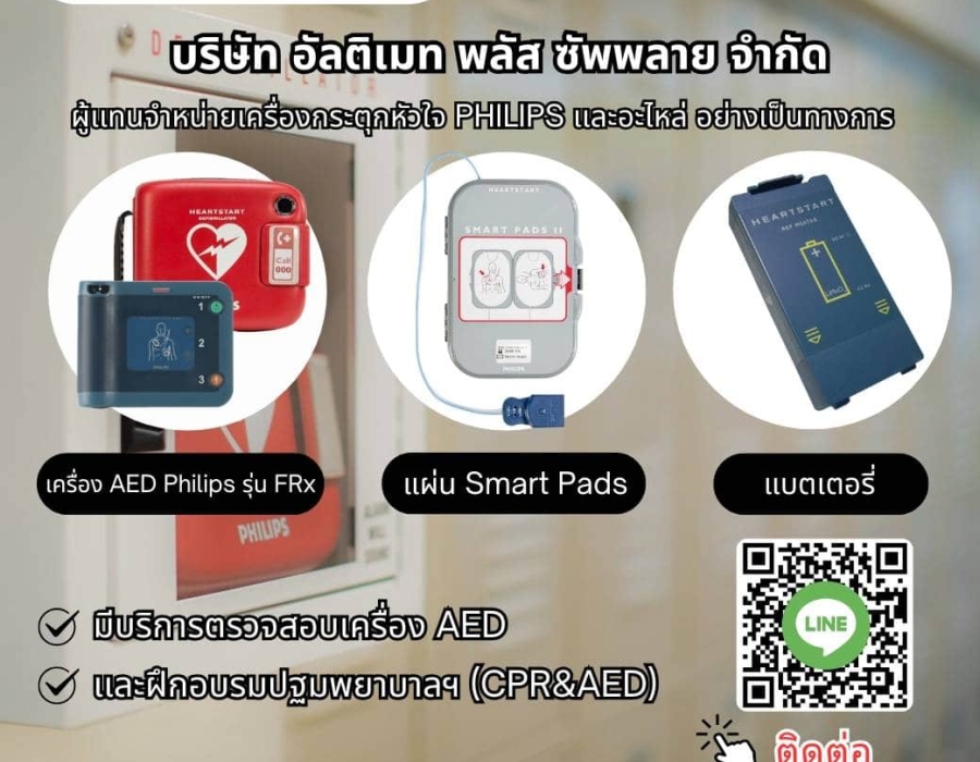 -มีจำหน่ายเครื่อง AED ใหม่ และมีบริการเช่าเครื่อง AED ระยะสั้น-ระยะยาว