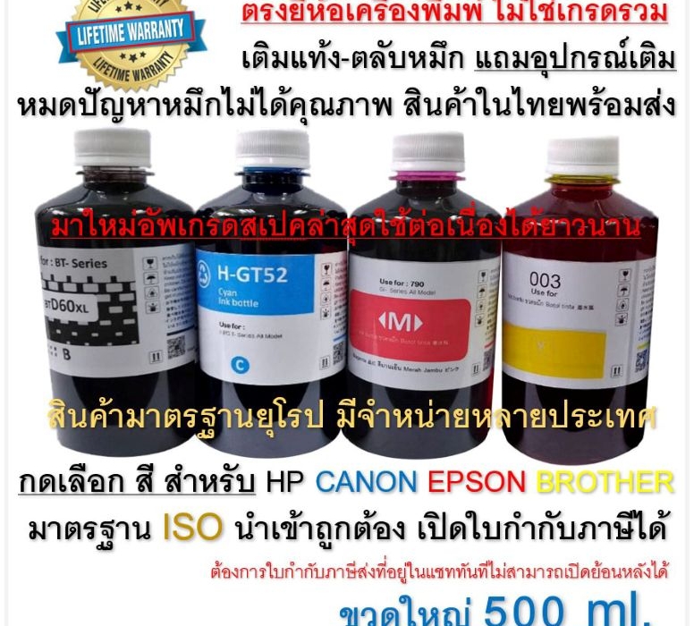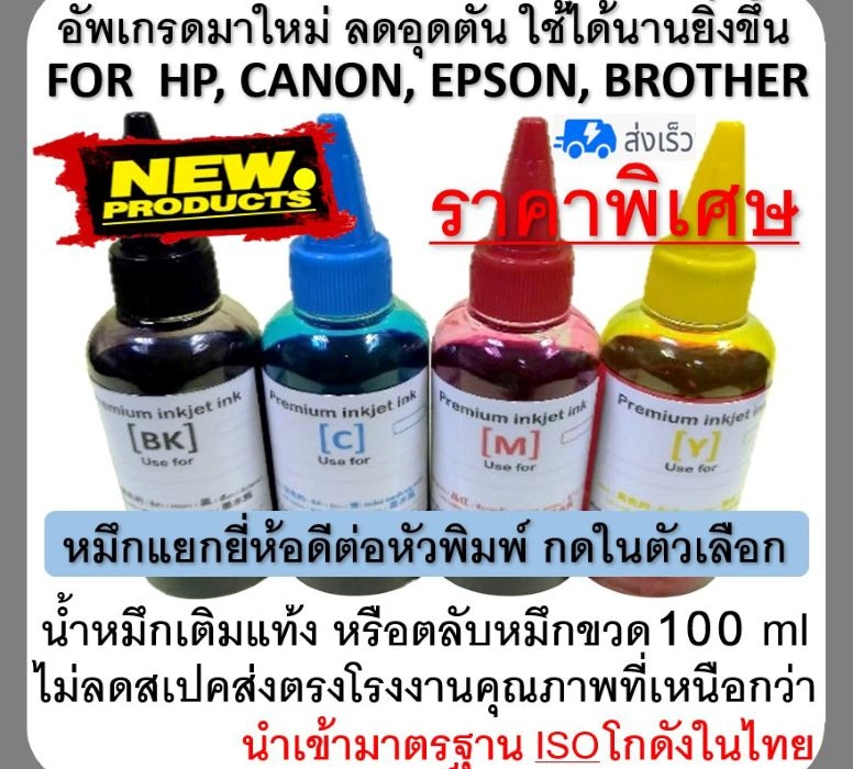 ขายส่งน้ำหมึกเติมขนาด 100, 500, 1000 ml. (1ลิตร) ทุกยี่ห้อ อาทิ HP, CANON, EPSON, BROTHER ราคาส่งจากโรงงาน (ราคาพิเศษ ด่วน!!! ก่อนปรับราคา)