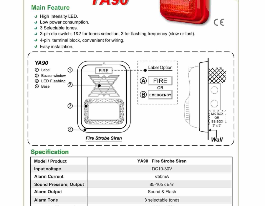 New !! ไซเรน ส่งสัญญาณเสียงและแสงในตัวเดียวกัน รุ่น YA90 Fire Strobe Siren ยี่ห้อ
